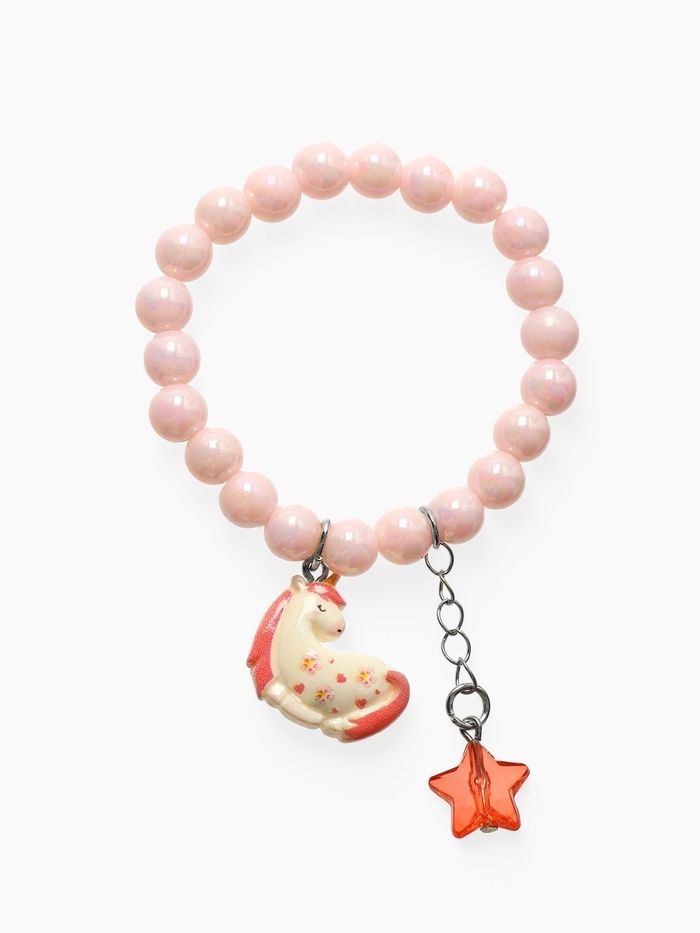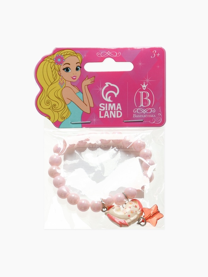 Браслет детский "Выбражулька" звезды на цепочке и единорог, жемчуг, цветной