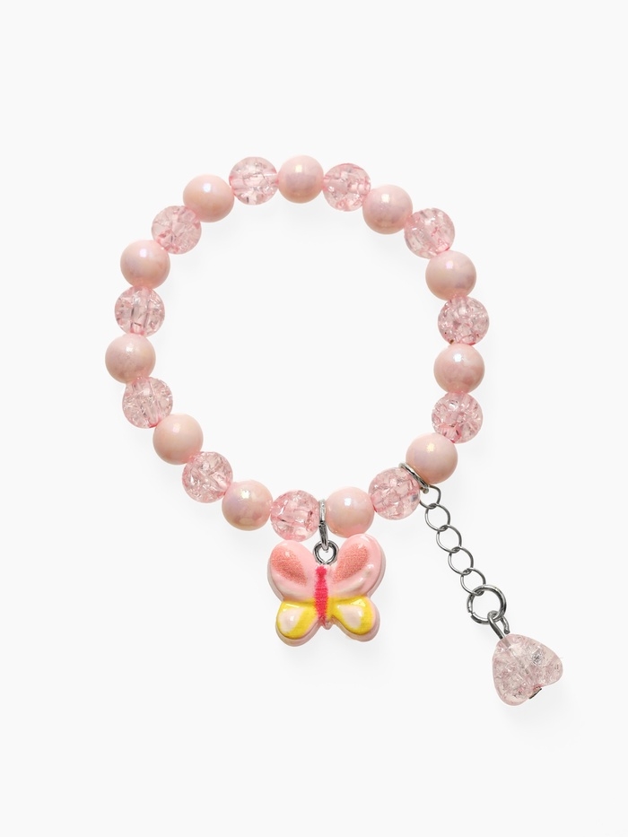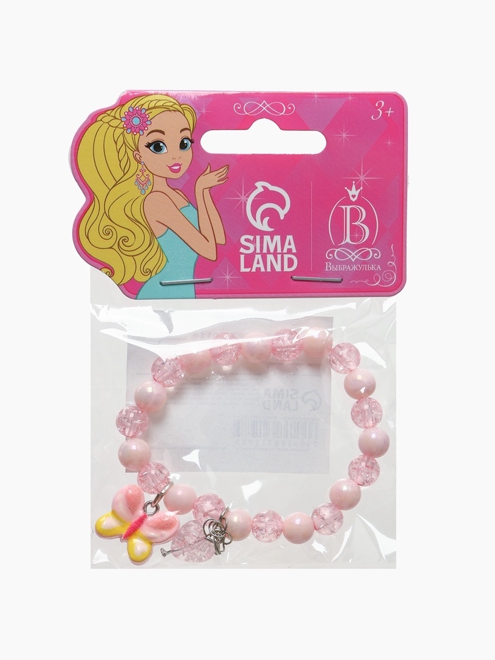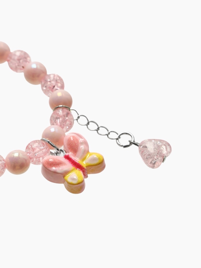 Браслет детский "Выбражулька" сердце на цепочке и бабочка, цвет розовый