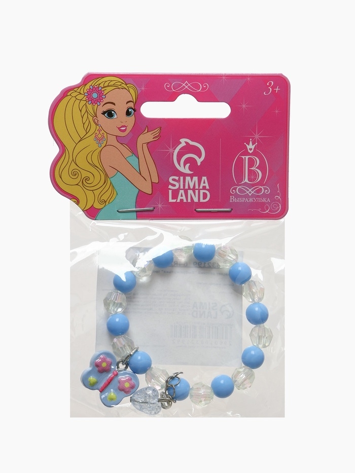 Браслет детский "Выбражулька" сердце н а цепочке и бабочка, цвет голубой