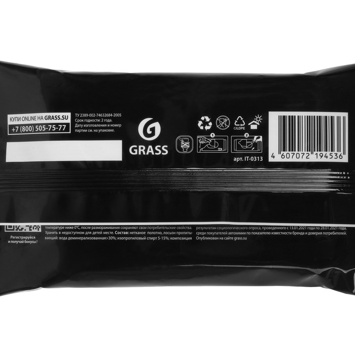 Влажные салфетки для очистки стекол, зеркал и фар, Grass