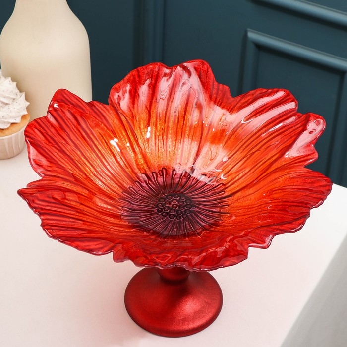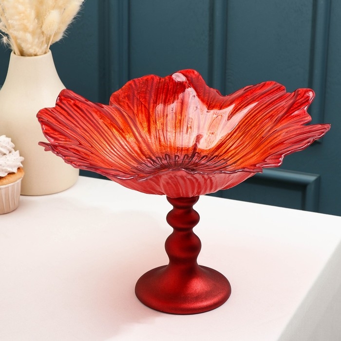 Блюдо сервировочное на ножке «Маки», d=30 см, цвет красный