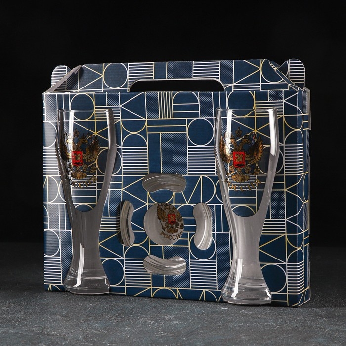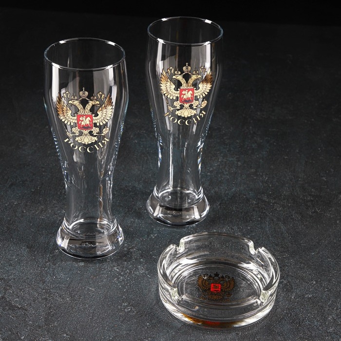 Набор «Золотой Герб России», 2 бокала для пива 300 мл, пепельница