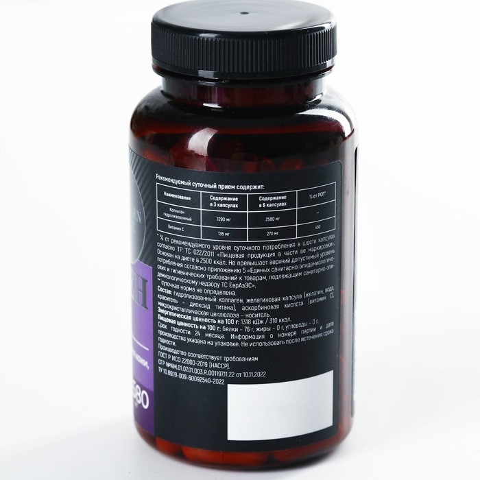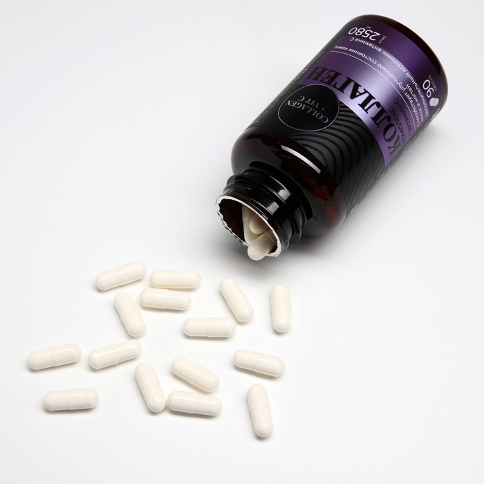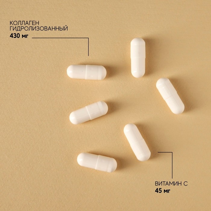 Состав: гидролизованный коллаген, желатиновая капсула (желатин, вода, диоксид титана - крастель), аскорбиновая кислота ( витамин С).