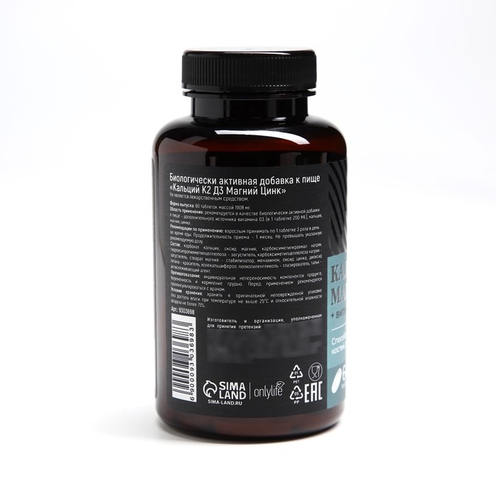 Кальций Магний Цинк, витамины, для укрепления иммунитета, 60 таблеток