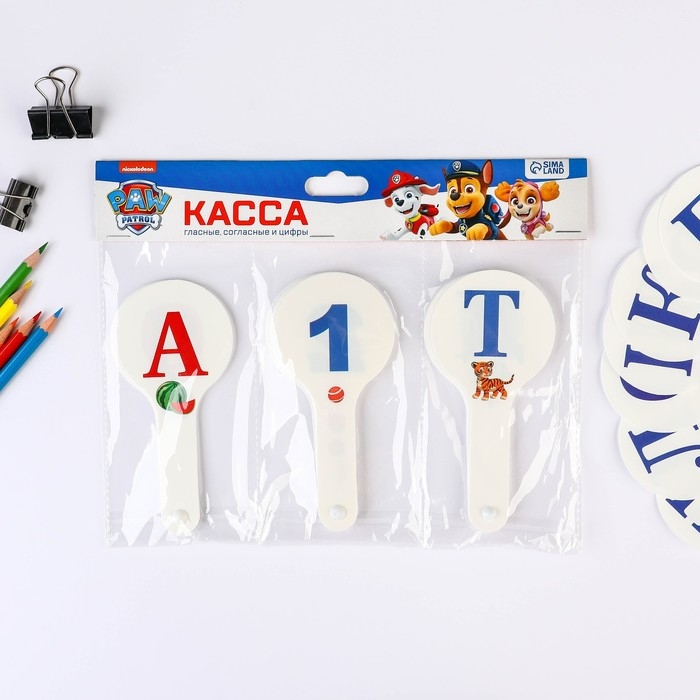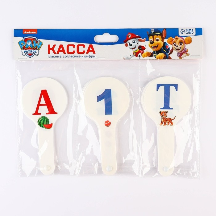 Набор веер-касс, гласные, согласные, цифры от 1 до 20 "Щенячий патруль", 3 штуки, гибкие, пакет с европодвесом