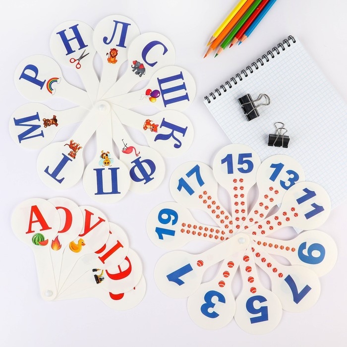 Набор веер-касс, гласные, согласные, цифры от 1 до 20, Calligrata TOP, плотные, 3 штуки, пакет с европодвесом
