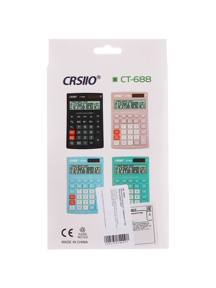 Калькулятор настольный 12-разрядный CT-388, розовый