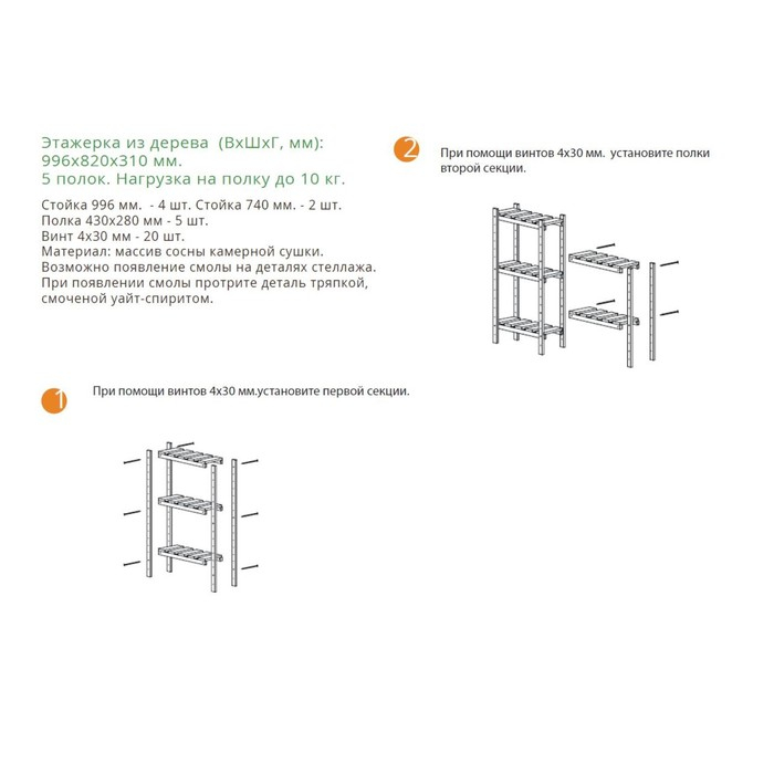 Стеллаж деревянный усиленный 2 секции, винтовое соединение, регулируемые полки 99,6х82х31 см