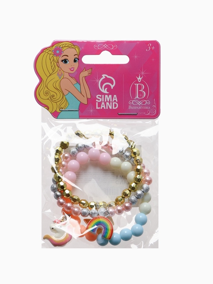 Браслет детский "Выбражулька" 3шт, сияние, единорог, радуга, корона, цветной