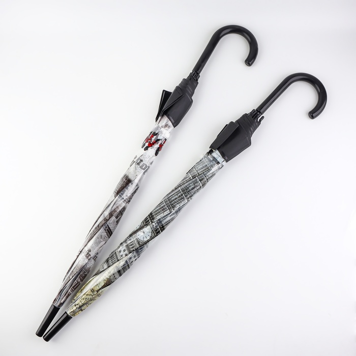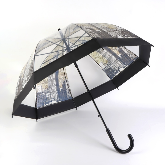 Зонт - трость полуавтоматический «Города», 8 спиц, R = 40/60 см, D = 120 см, рисунок МИКС