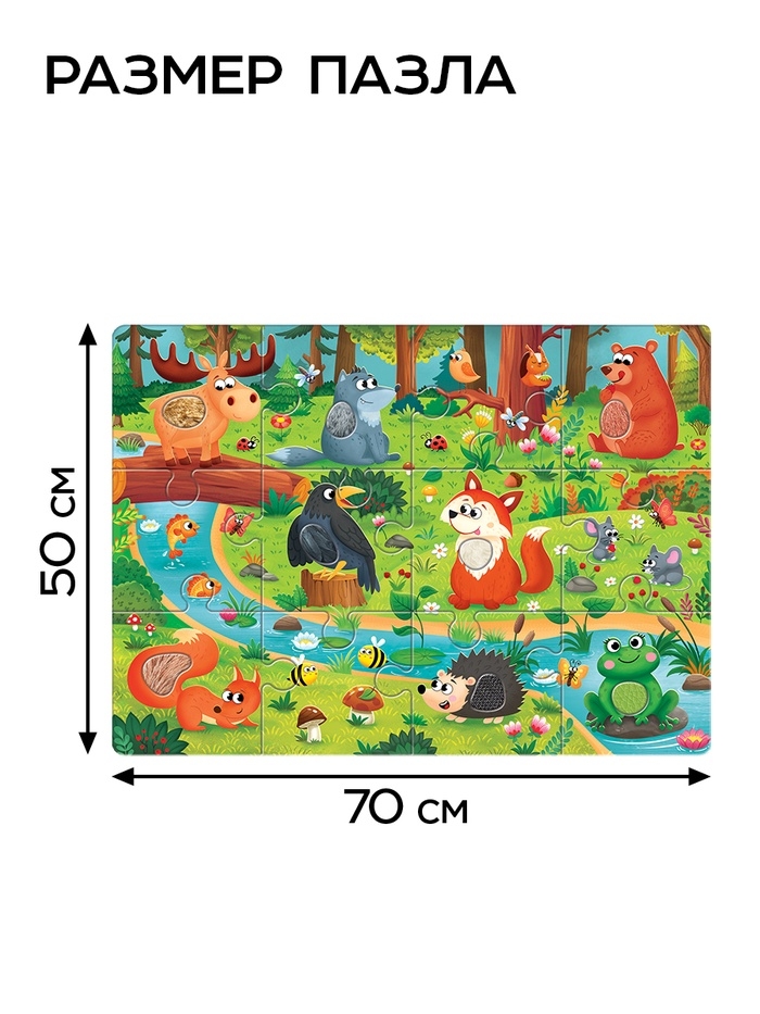 Пазл напольный с тактильными вставками "Лесные зверята"