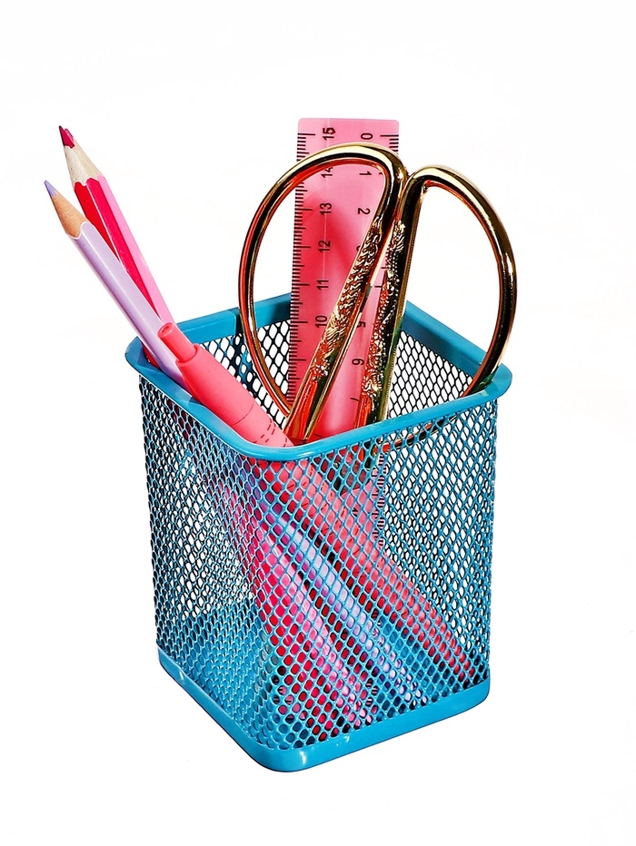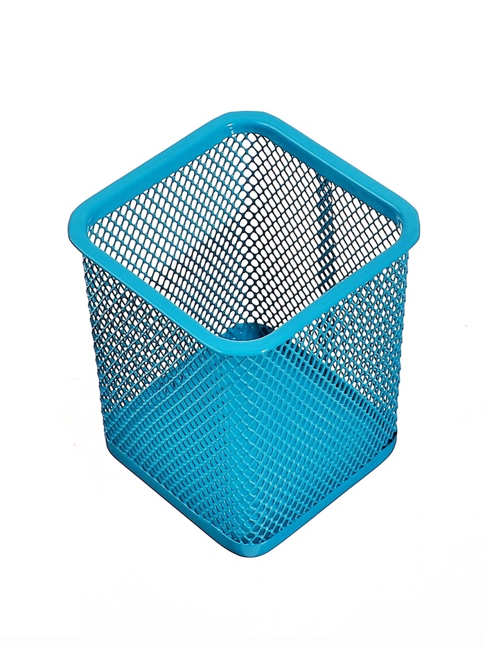 Стакан для пишущих принадлежностей квадратный сетка металл бирюзовый
