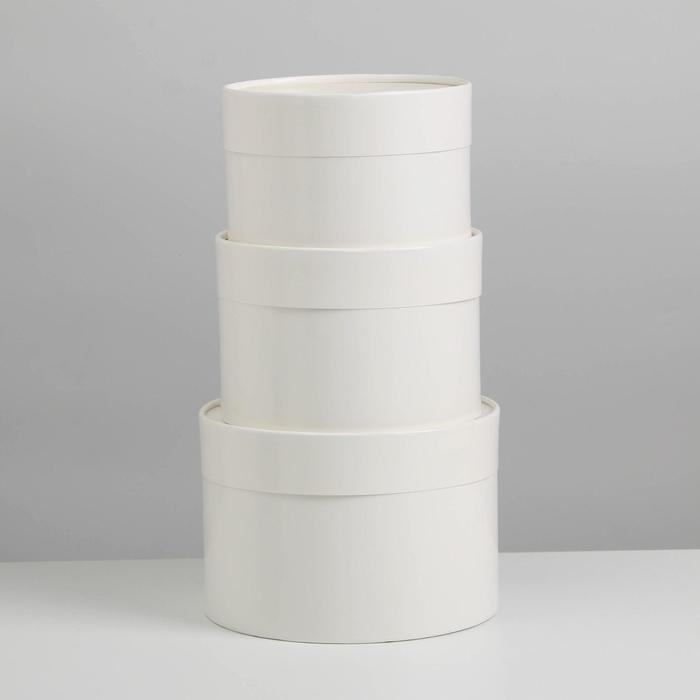 Набор шляпных коробок 3 в 1 белый, упаковка подарочная, 16 х 10, 14 х 9, 13 х 8,5 см