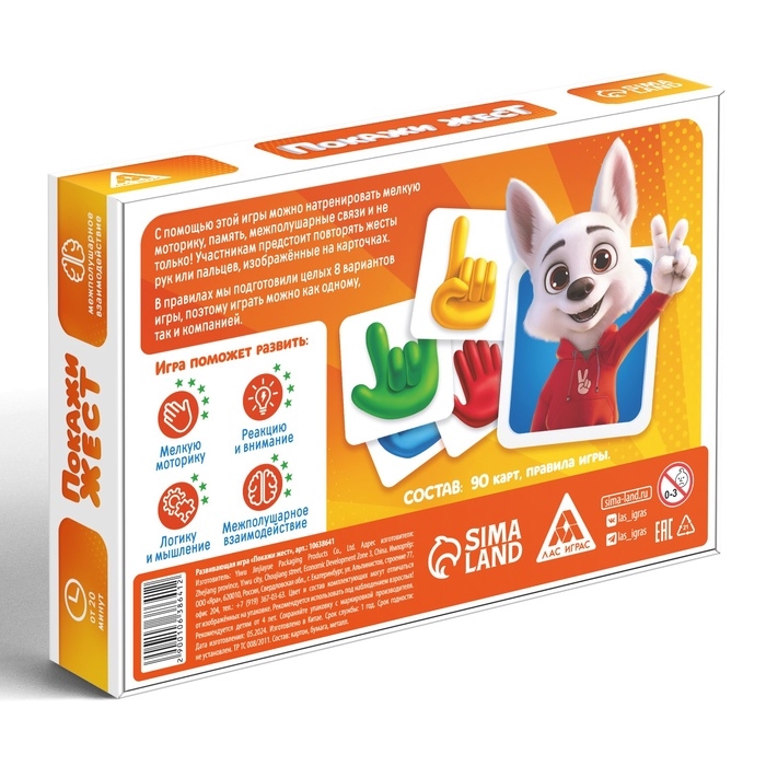 Настольная игра «Покажи жест», развивающая, 90 карт, 4+