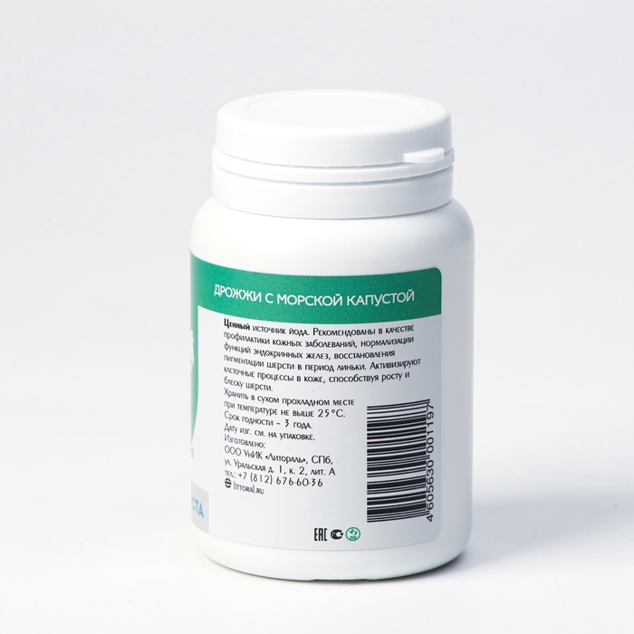Пивные дрожжи "Блестящая шерсть" для кошек и собак, с морской капустой, 80 таб