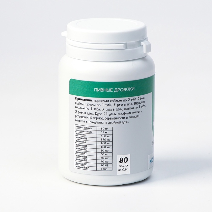 Пивные дрожжи с микроэлементами для кошек и собак, 80 таб
