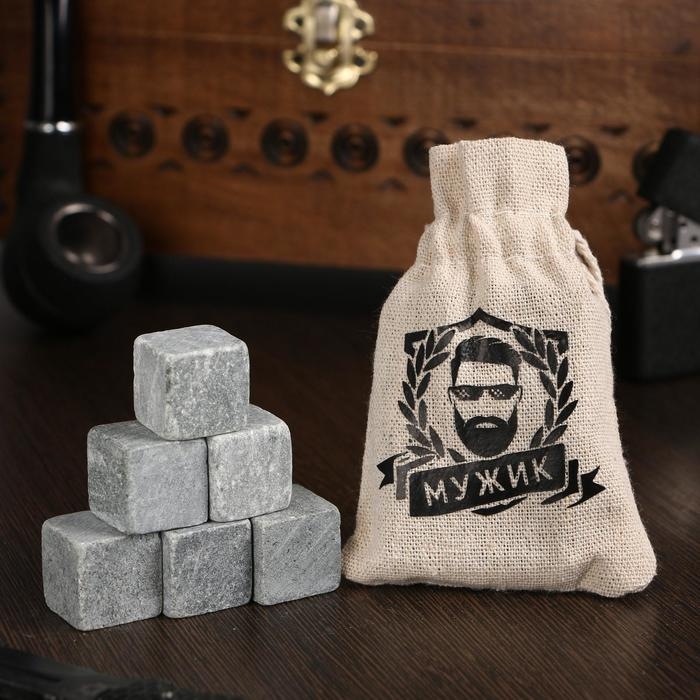 Камни для виски в мешочке "Мужик", натуральный стеатит, 6 шт