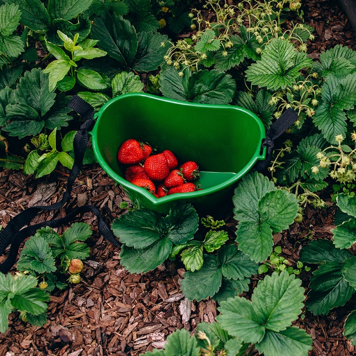 Для сбора ягод используйте специальную ёмкость с ремнём. Вы можете надеть её на шею, поэтому во время сбора ягод ваши руки останутся свободными.