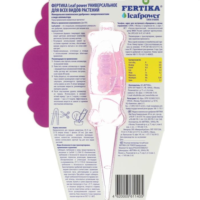 Удобрение "Фертика", "Leaf Power", универсальное, 30 мл