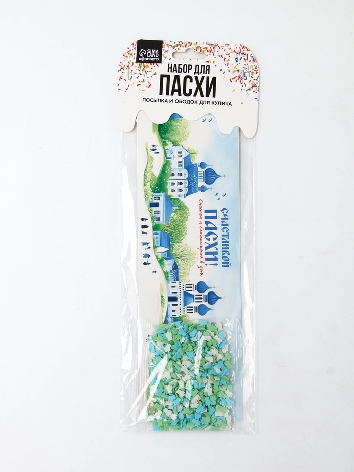 Набор для украшения кулича с посыпкой и ободками весна 2 шт (25х5)