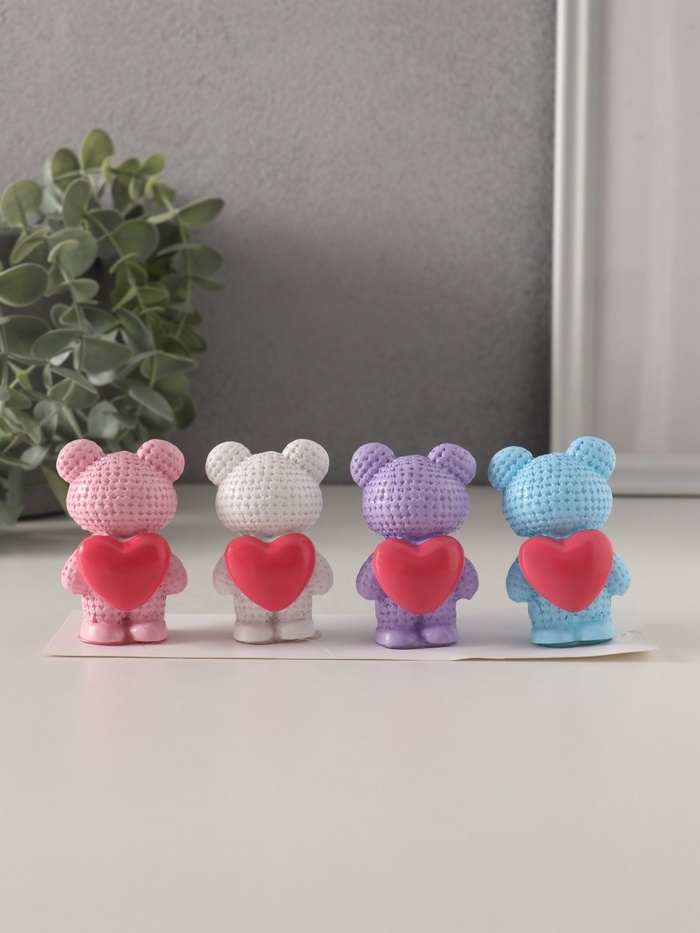 Сувенир полистоун "Вязаный мишка с большим сердцем" набор 4 шт 2,7х4х6 см