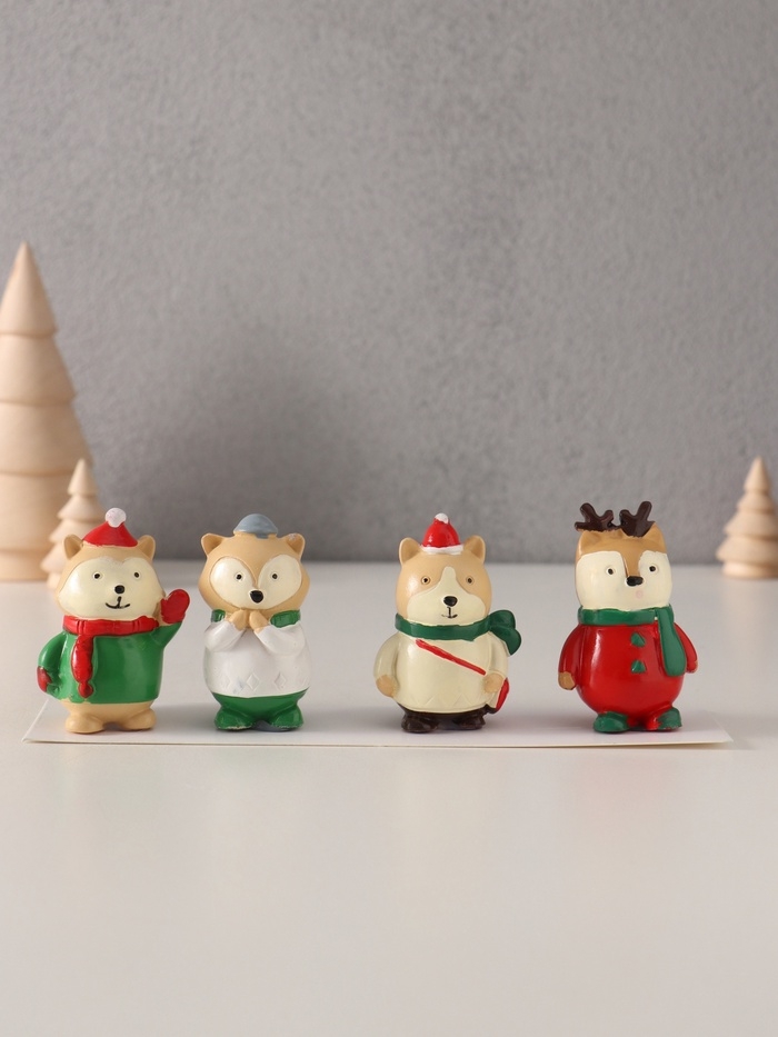 Сувенир полистоун "Зимние зверушки" набор 4 шт 2,7х3,8х5,6 см