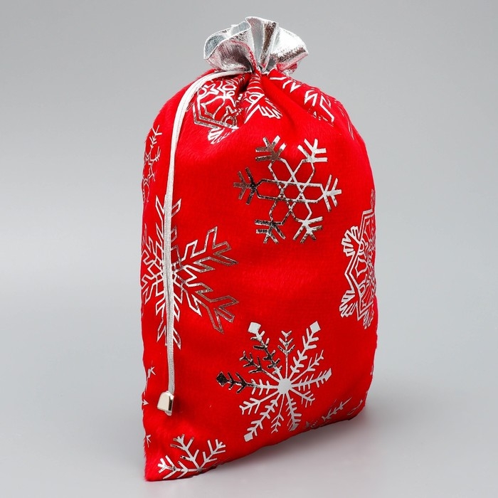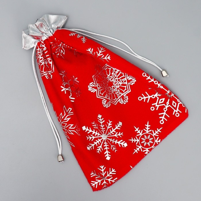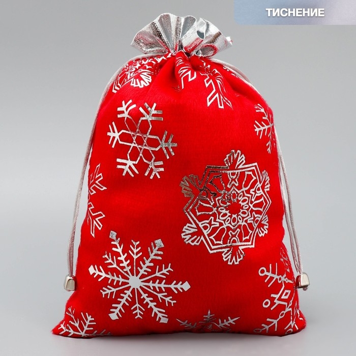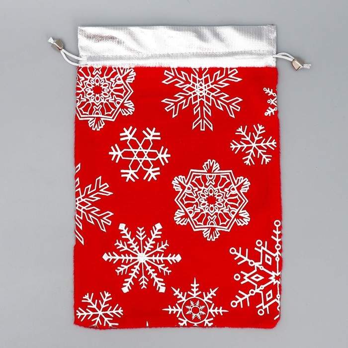 Мешочек подарочный плюш «Спешу к тебе», снежинки, тиснение, 20 х 30 см +/- 1.5 см