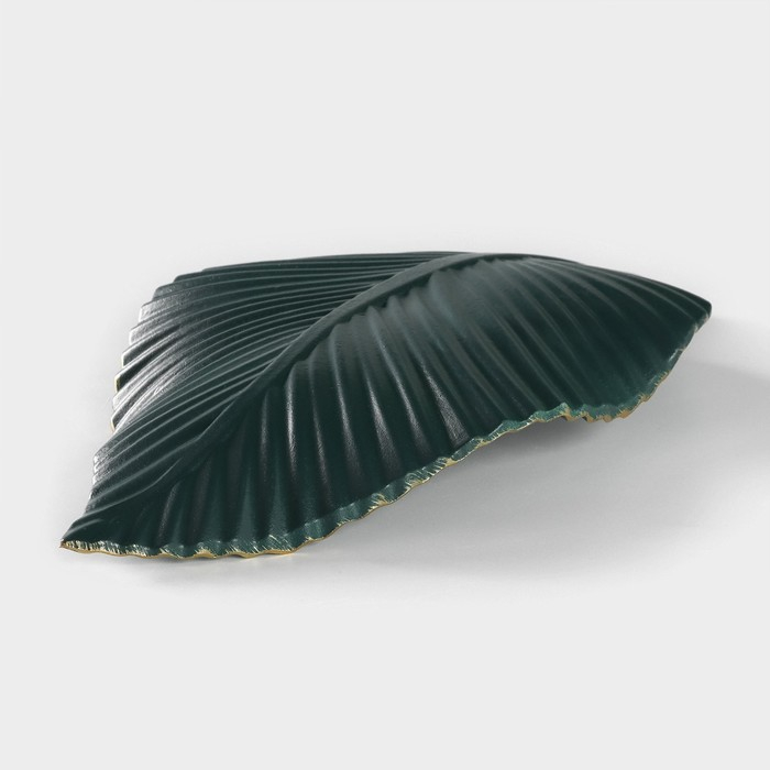Блюдо для фруктов Доляна «Лист», 35,5×20×5 см, цвет золотой с зелёным