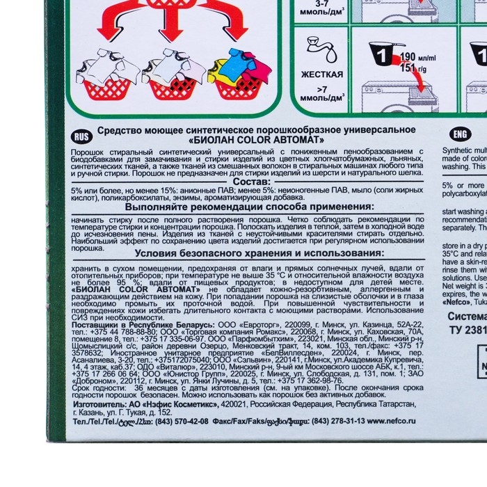 Порошок стиральный "Биолан" Автомат Color, 350 г