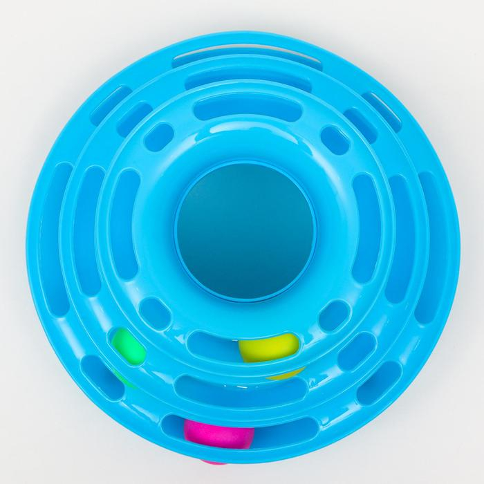 Игровой комплекс "Пижон" для кошек с 3 шариками, 24,5 х 24,5 х 13 см, голубой