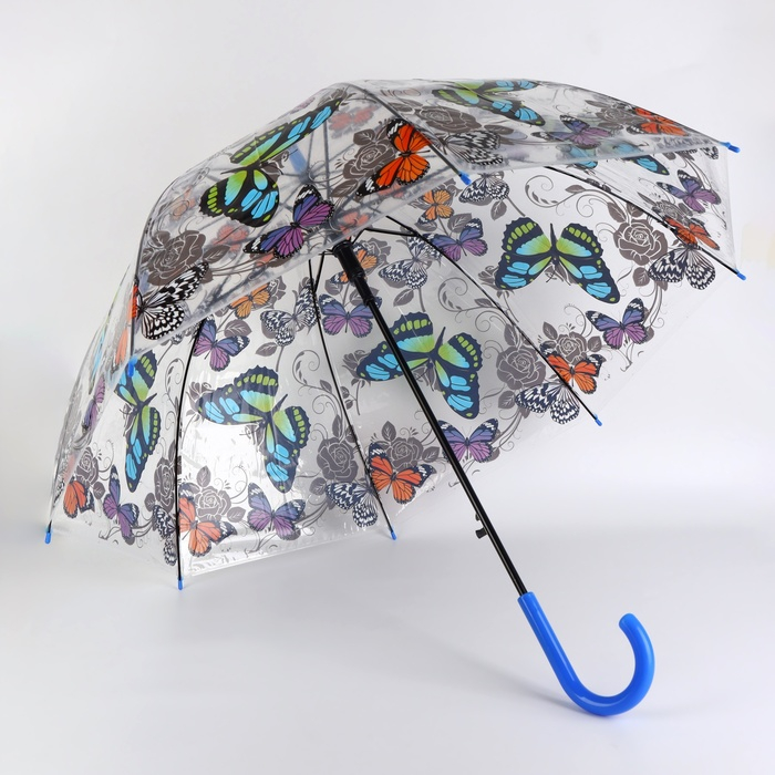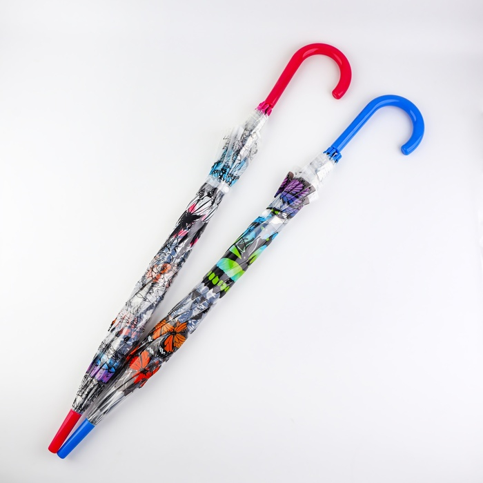 Зонт - трость полуавтоматический «Бабочки», 8 спиц, R = 43/60 см, D = 120 см, рисунок МИКС