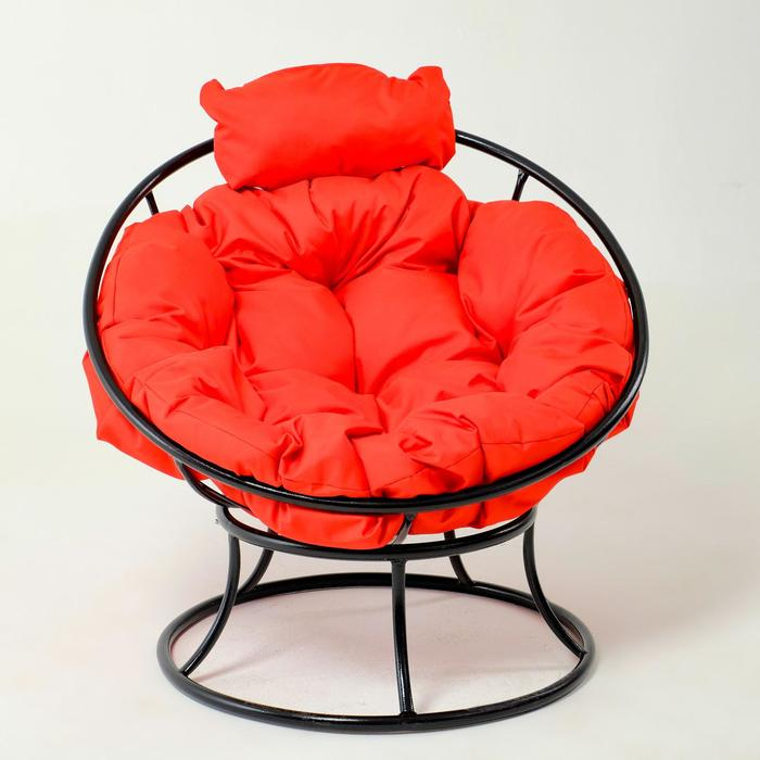 Кресло "Папасан" мини, с красной подушкой, черный каркас, 81х68х77см