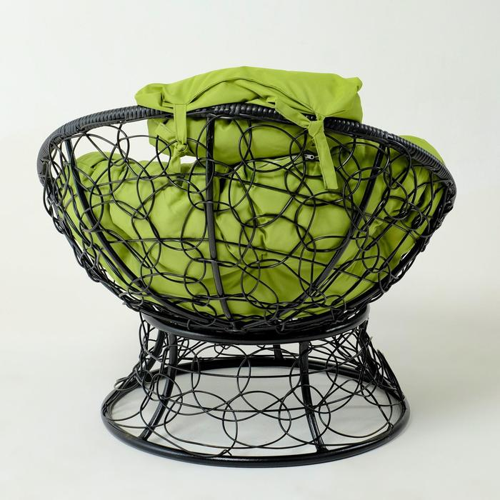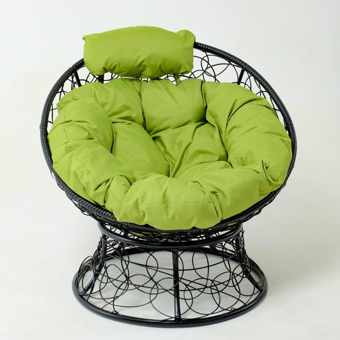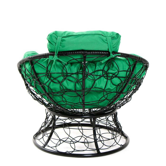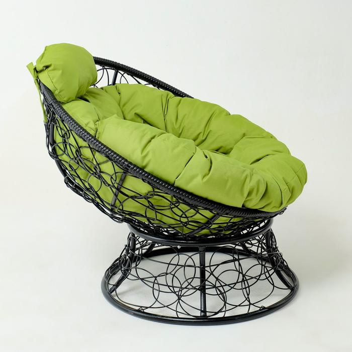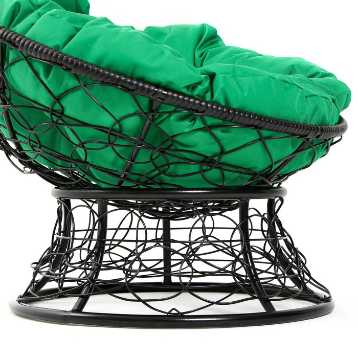 Кресло "Папасан" мини, ротанг, подушка зеленая микс, черный каркас, 81х68х77см