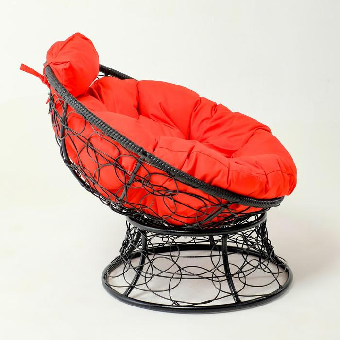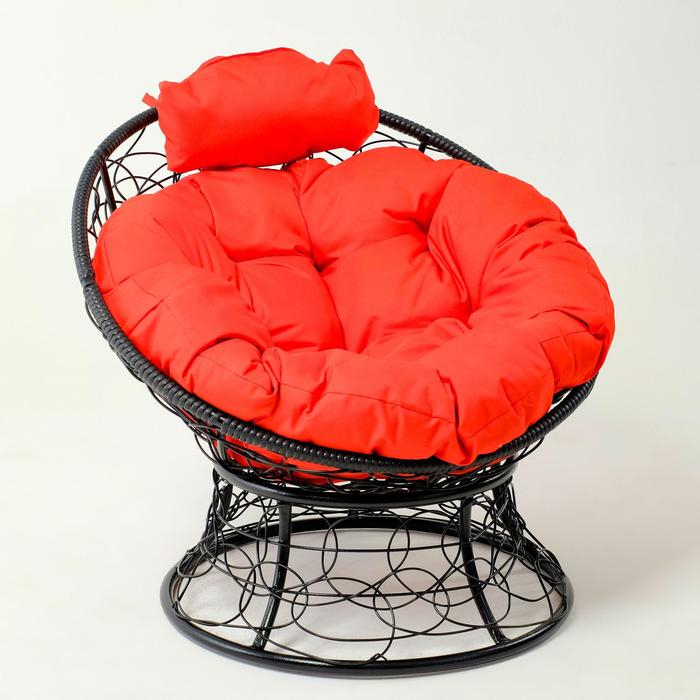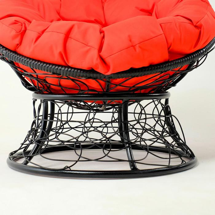 Кресло "Папасан" мини, ротанг, с красной подушкой, черный каркас, 81х68х77см