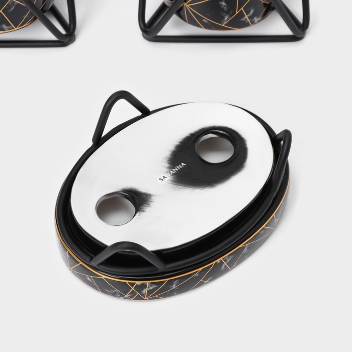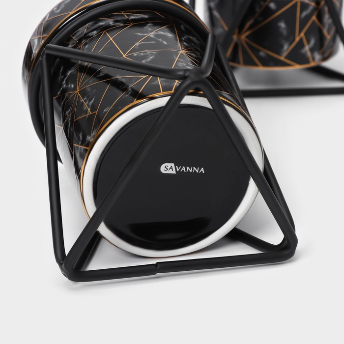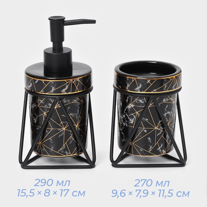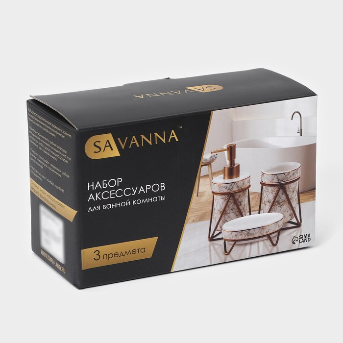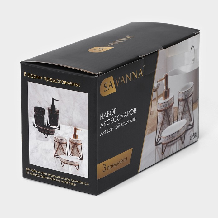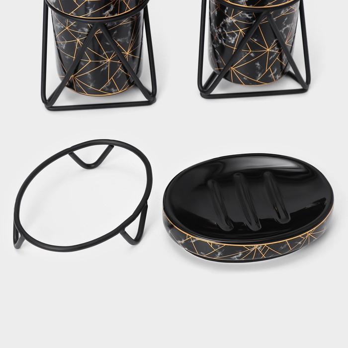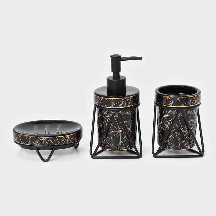 Набор для ванной комнаты SAVANNA «Геометрика», 3 предмета (мыльница, дозатор для мыла 290 мл, стакан), цвет чёрный