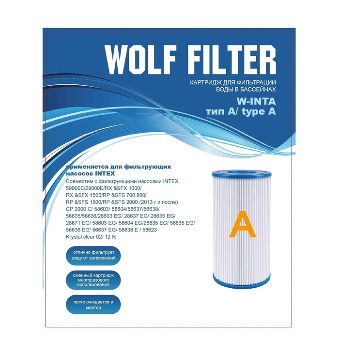 Сменный фильтр-картридж тип "А" для очистки воды в надувных и каркасных бассейнах, легко и быстро меняется.