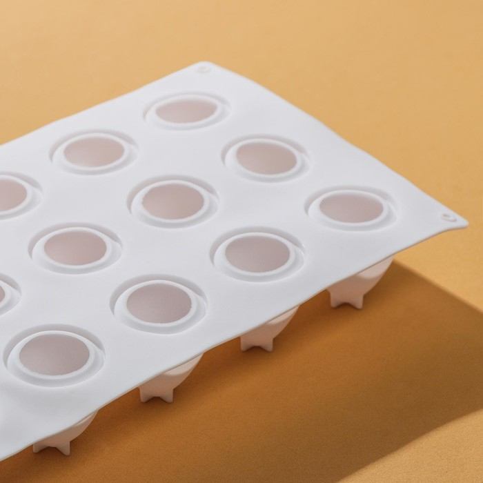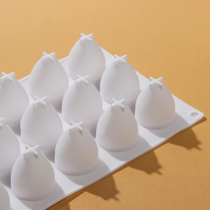 Форма для муссовых десертов и выпечки KONFINETTA «Клубника», силикон, 29×17×4 см, 15 ячеек, цвет белый