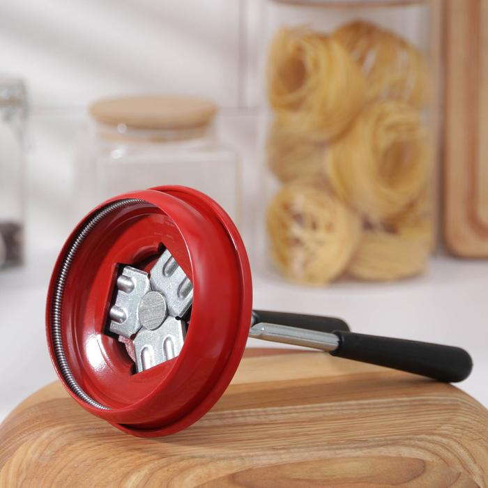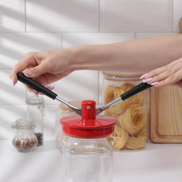 Устройство предназначено для быстрой и герметической укупорки стеклянных банок с металлическими крышками толщиной не менее 0,2 мм.