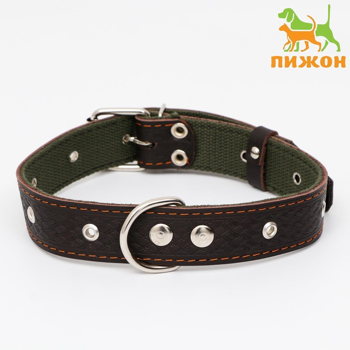 Ошейник комбинированный безразмерный, кожа/брезент, 65 х 3,5 см, ОШ 31-61 см, коричневый