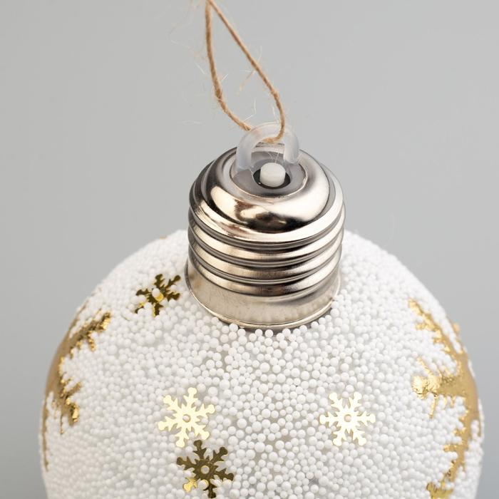 Ёлочный шар «Белые лепестки», батарейки, 5 LED, свечение тёплое белое