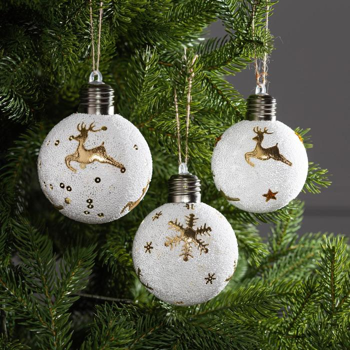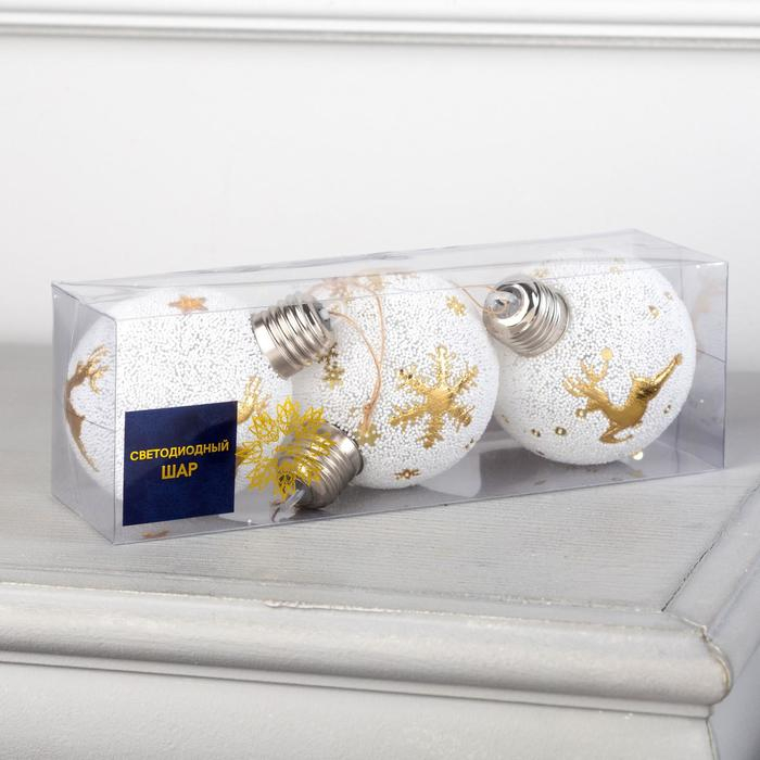 Набор ёлочных шаров «Золотистые узоры» 3 шт., батарейки, 1 LED, свечение тёплое белое