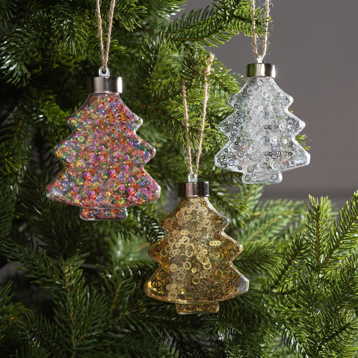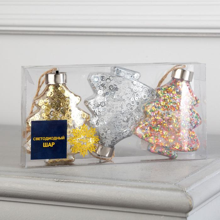 Набор ёлочных шаров «Ёлочки» 3 шт., батарейки, 1 LED, свечение тёплое белое, RGB, белое