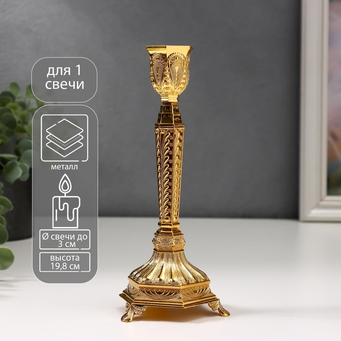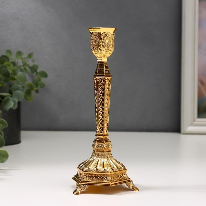 Подсвечник металл на 1 свечу "Узорный" золото 19,8х8х8 см