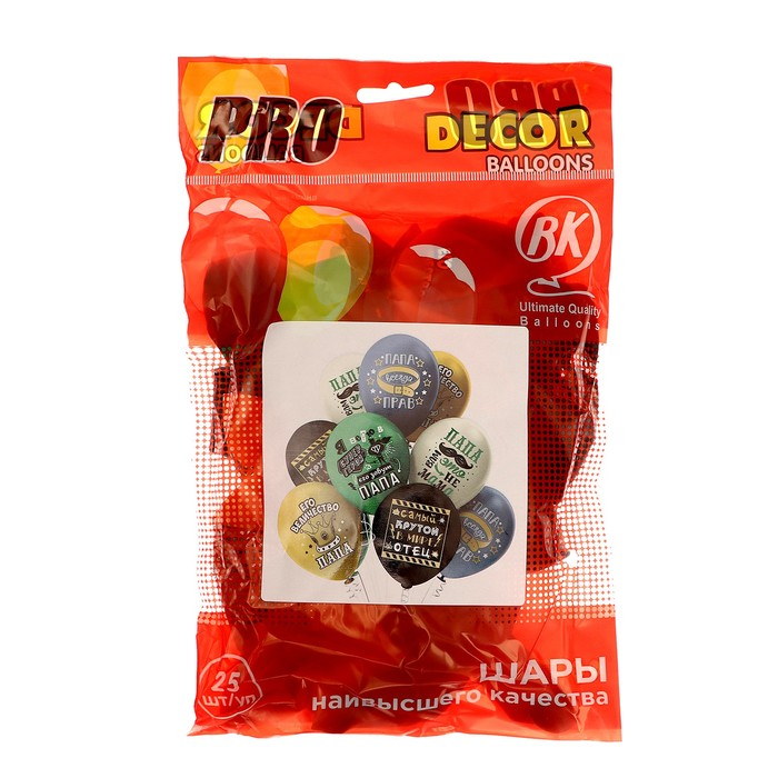 Шар латексный 12" «Папа», пастель, 1-сторонний, набор 25 шт., МИКС
