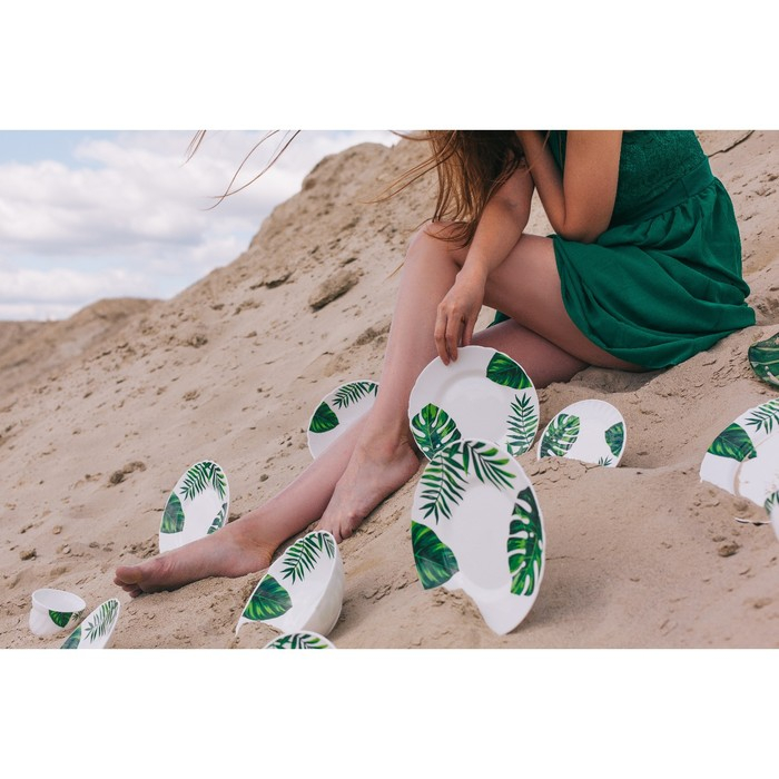 Блюдо сервировочное Avvir «Лист папоротника», овальное, 30×22 см, стеклокерамика, цвет белый