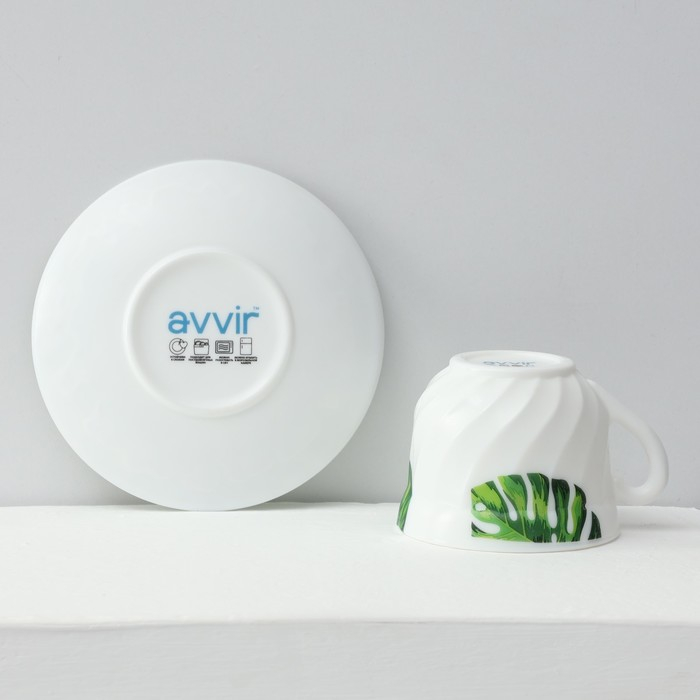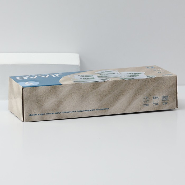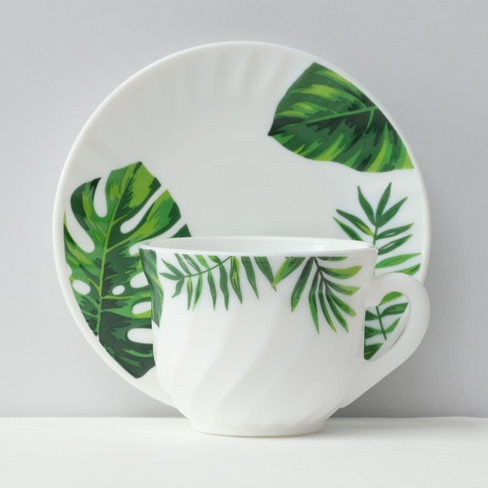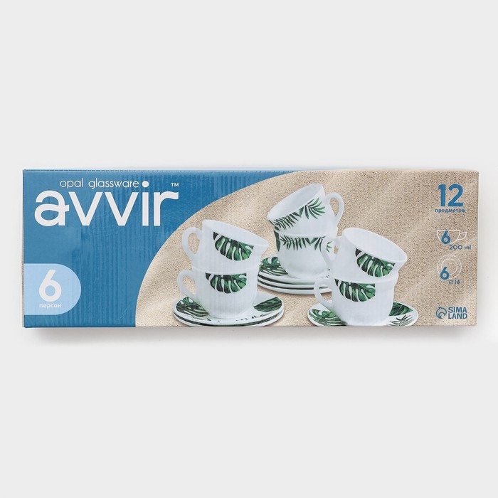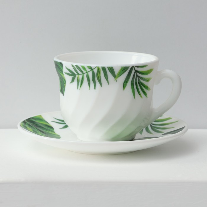 Сервиз чайный «Лист папоротника», 12 предметов: чашка 200 мл, блюдце d=14 см, стеклокерамика, цвет белый