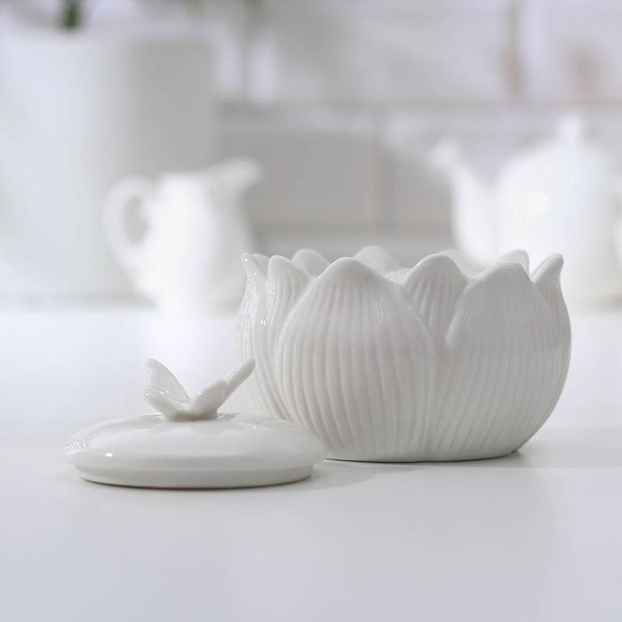 Сахарница керамическая «Цветок», цвет белый