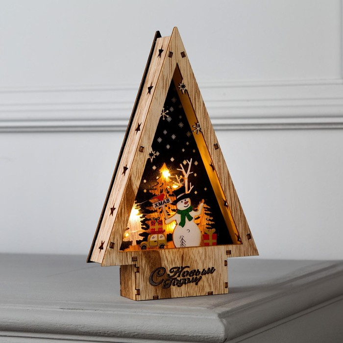 Светодиодная фигура «Снеговик» 14 × 22.5 × 4 см, дерево, батарейки АААх2 (не в комплекте), свечение тёплое белое