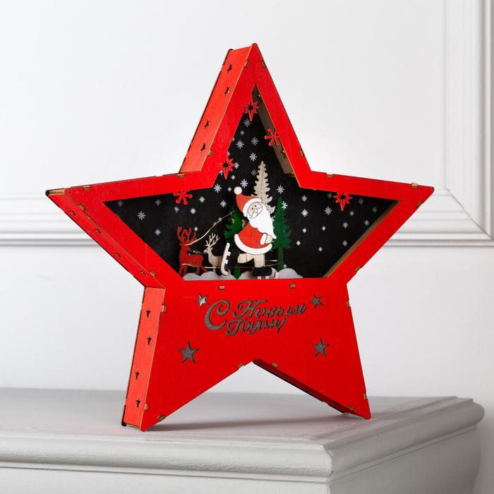 Светодиодная фигура «Дед Мороз на коньках» 30 × 30 × 5 см, дерево, батарейки АААх2 (не в комплекте), свечение тёплое белое