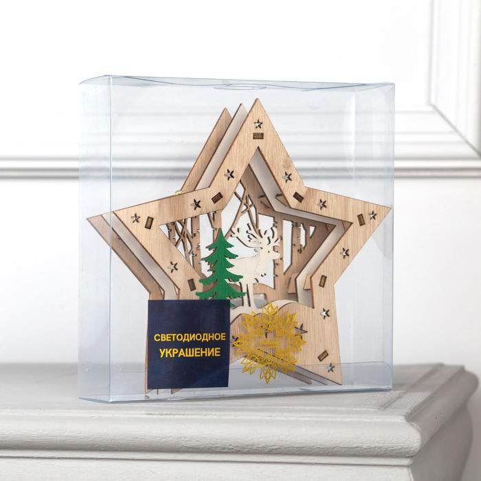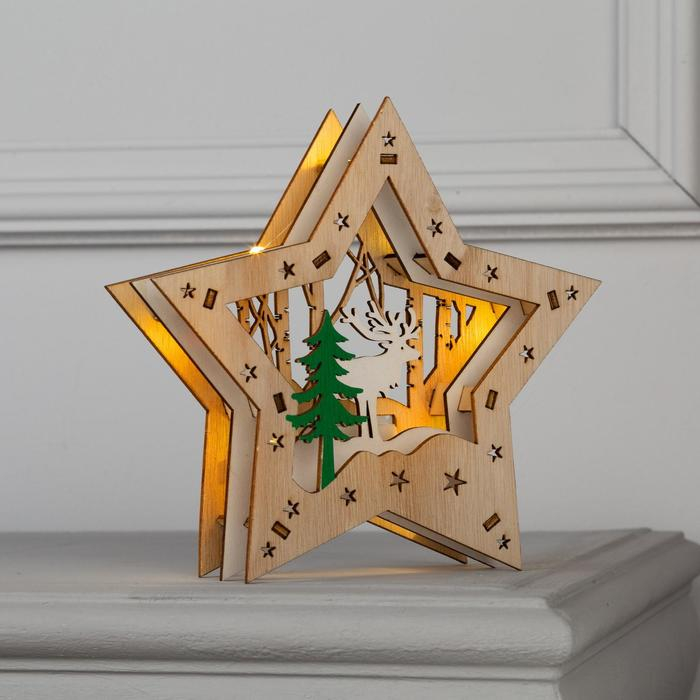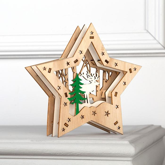 Светодиодная фигура «Звезда с оленем в лесу» 18 × 18 × 5 см, дерево, батарейки АААх2 (не в комплекте), свечение тёплое белое